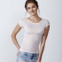 Dopasowana koszulka z krótkim rękawem, dekoltem w łódkę. Lamówka przy szyi i rękawach oraz szwy boczne. Wykonana z poliestrowej tkaniny o wyglądzie i dotyku zbliżonym do bawełny.