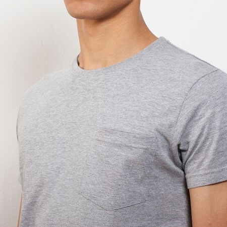 Koszulka z kieszonką. Czterowarstwowy, okrągły kołnierz. Wzmocnione, kryte szwy przy kołnierzyku i na ramionach. Szwy boczne.