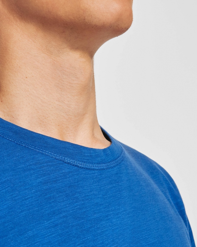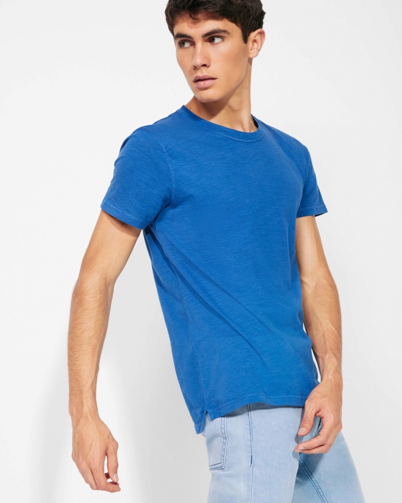 Krótki rękaw, wykonana z tkaniny vigore. Okrągły dekolt z tej samej dzianiny. Wewnętrzne, kontrastujące szwy przy ramionach. Boczne ozdobne szwy z rozcięciami po bokach. Tył koszulki jest nieco dłuższy niż przód.