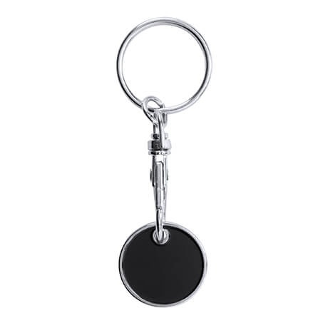 Praktyczny żeton do wózka wyposażony w metalowy karabińczyk oraz kółeczko na klucze. Przednia strona żetonu jest lakierowana. To funkcjonalny dodatek, który uporządkuje klucze i ułatwi zakupy — dzięki niemu nie trzeba szukać monet czy innych żetonów, by użyć wózka sklepowego.