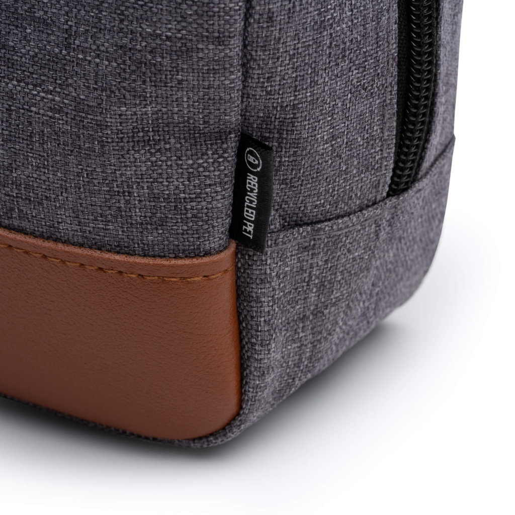 Kosmetyczka z poliestru RPET pochodzącego z recyklingu, z zakończeniami z ekoskóry PU i praktycznym uchwytem do przenoszenia. Przechowuj swoje rzeczy w sposób wygodny i elegancki.