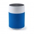 Bezprzewodowy zestaw głośnomówiący Bluetooth 5.0 w białym kolorze z gumowym wykończeniem. Urządzenie wyposażone jest w dotykowy panel sterowania oraz wielokolorowe podświetlenie LED w podstawie, które losowo zapala się w rytm odtwarzanej muzyki.