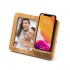 Bezprzewodowa ładowarka z ramką na zdjęcia wykonana z bambusa — doskonała do fotografii o wymiarach 10 x 15 cm.