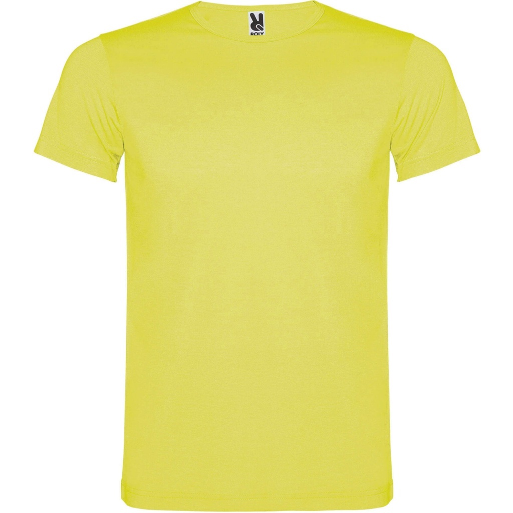 Koszulka z krótkim rękawem. Okrągły dekolt, wzmocnione kryte szwy. Fluorescencyjne kolory. Koszulka wykonana z tkaniny poliestrowej przypominającej w dotyku bawełnę.