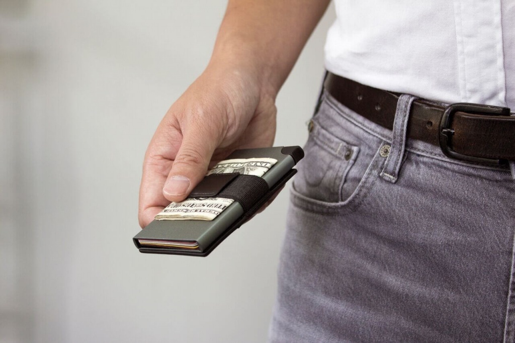 WALLY CARTA  – aluminiowy portfel RFID ze skórzanym etui
