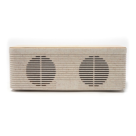 Głośnik Bluetooth z bezprzewodową stacją ładującą. Główna konstrukcja została wykonana z włókna pszennego i naturalnej bambusowej powierzchni.