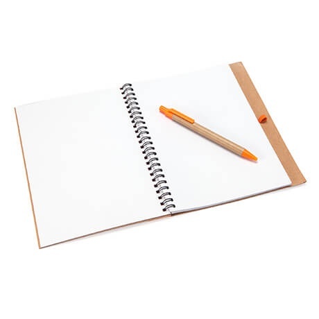 Notatnik na kółkach w formacie A5 z gładką, twardą okładką wykonaną z tektury z recyklingu.