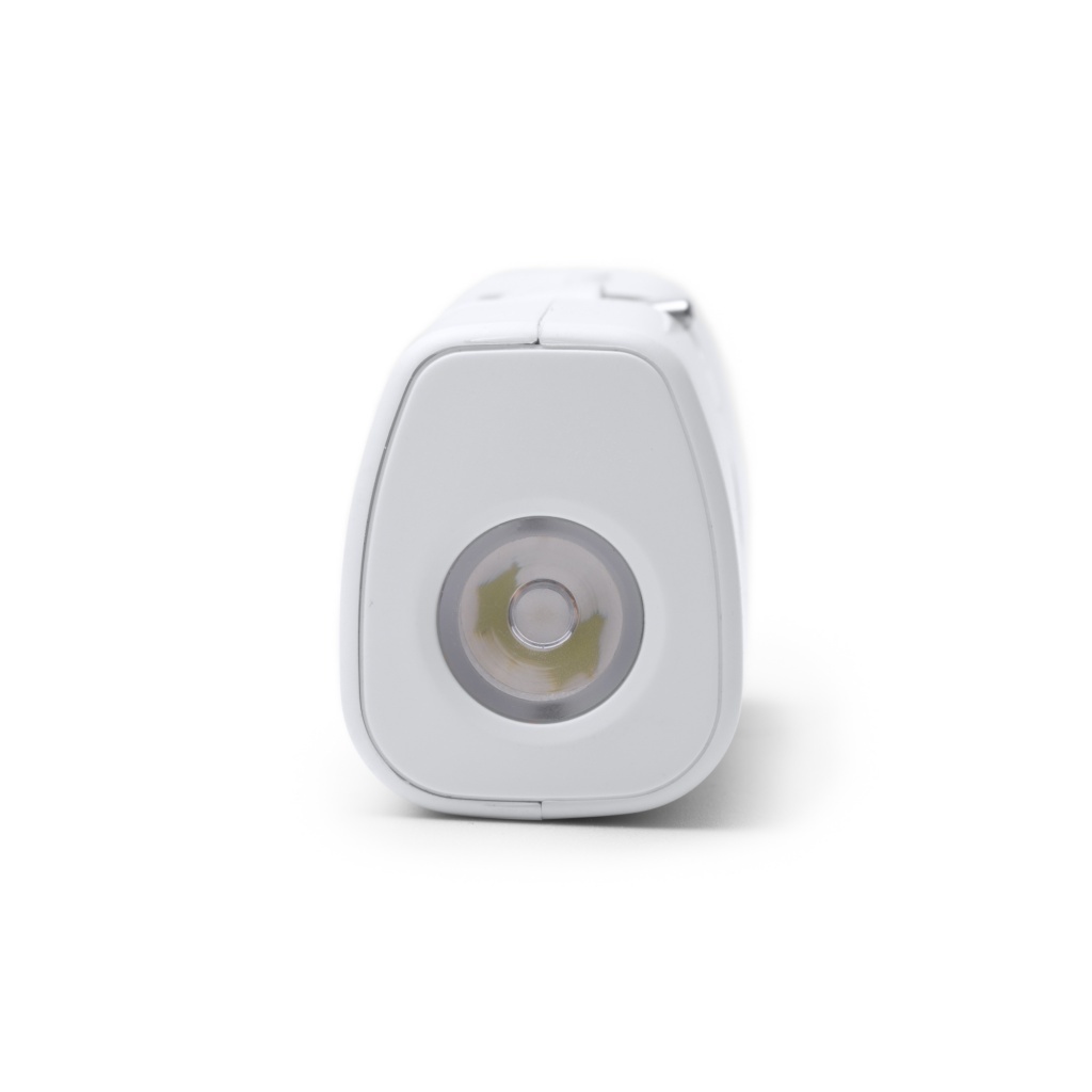 Powerbank o pojemności 5000 mAh wykonany z tworzywa ABS pochodzącego z recyklingu, wyposażony w funkcję latarki LED oraz składane wyjście USB typu C.